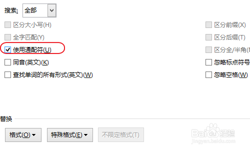 在适用通配符上打钩,如果不打钩,查找功能会按普通字符识别。所以这一步一定要在适用通配符上打勾。