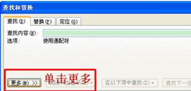 出现“查找和替换”对话框,单击更多。