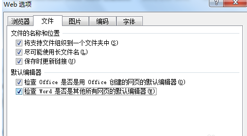点击工具→Web选项,调出对话框,共有五项功能:浏览器、文件、图片、编码及字体。浏览器选项内你可以选择需要的功能,但是请将“允许将png作为图形格式”勾选,否则png图片不能正常显示在网页上。