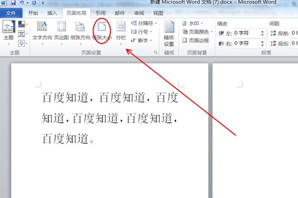 1、打开需要操作的WORD文档,在页面布局工具栏中找到并点击“纸张大小”。