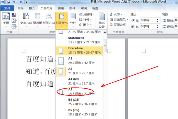 2、在弹出的选项中点击选择“A5”即可。