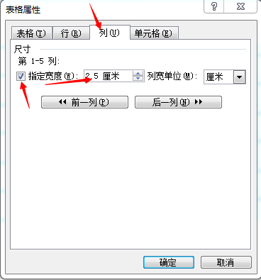 选择某列,右击鼠标--表格属性,打开对话框: