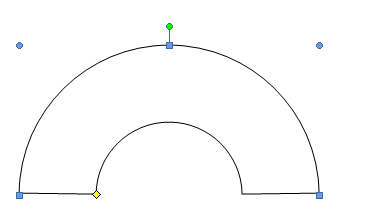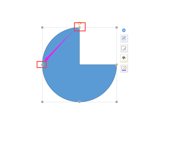 点击该空心弧图形图形进入编辑图形状态,你会发现在内弧的一角有个黄色的小四方块。