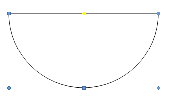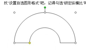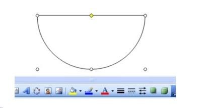 3.用左键点住上面那个黄色的点 逆时针移到下面那个灰色的点上面,这样一个半圆就出来了
