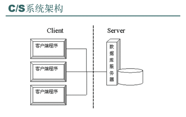 C/S结构,即Client/Server(客户机/服务器)结构,是大家熟知的软件系统体系结构,通过将任务合理分配到Client端和Server端,降低了系统的通讯开销,可以充分利用两端硬件环境的优势。早期的软件系统多以此作为首选设计标准。