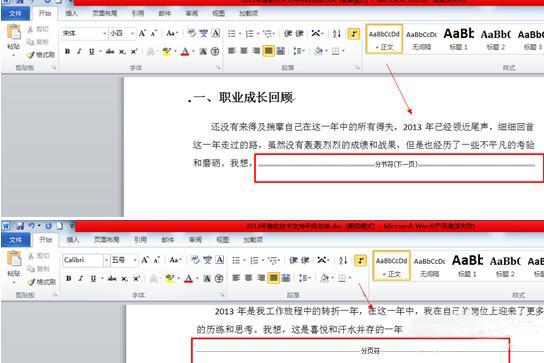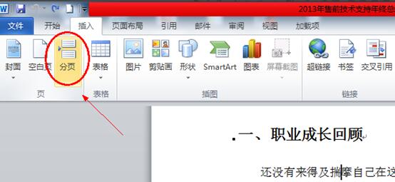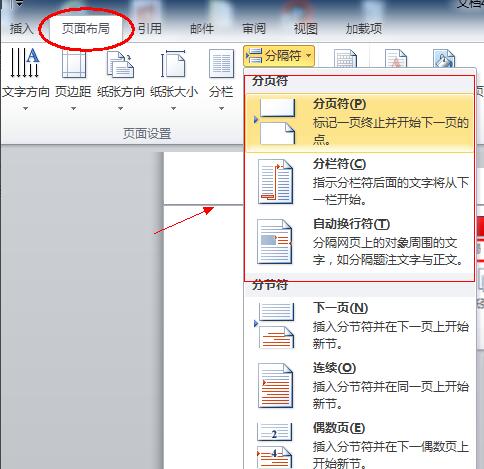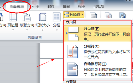 Word2010具有插入分页符以及分节符功能,具体操作如下: