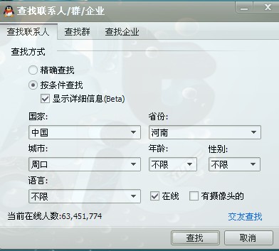 QQ面板上的“查找”出来后再点一下按条件查找(在精确查找下面)就是这个地方了、、如果看不懂可以看图片、