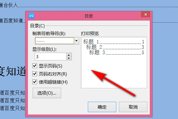 3、进入到目录里面之后设置目录需要的样式,点击确定。