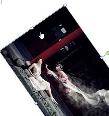 2、点击选中图片,拖动旋转手柄;