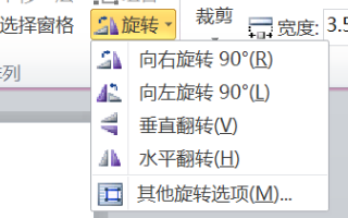 1.选中图片,在格式”选项卡中的“排列”区域选择“旋转”选项组,在弹出的下拉菜单中选择“其他旋转选项”命令。