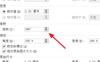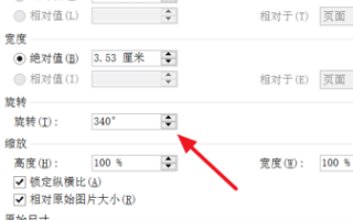 第3步,打开“大小”对话框。勾选“锁定纵横比”复选框,在“尺度和旋转”区域输入图片高度或宽度值,即可精确调整图片的大小,然后单击“确定”按钮。