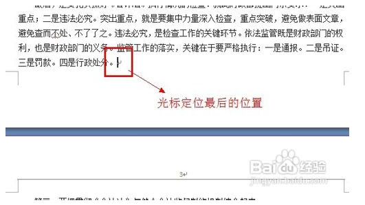 4、将光标定位在要设置横过来的页面的结尾,再进行步骤2的操作,光标会跳转到下一页的开头。(以下为举例)