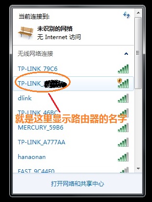 在弹出的“无线网络连接”里会显示该路由器的名子(名称一般是路由器名子和MAC地址后六位的组合)(如下图)