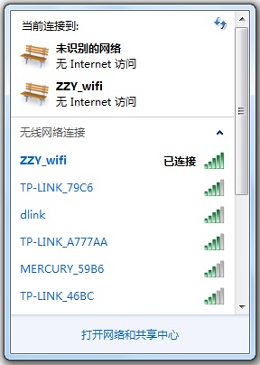 此时在任务栏托盘的网络图标上点击,即可看到你设置的路由器,并显示“已连接”。(如下图)