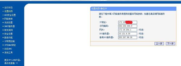 静态方式:将网络管理员提供的IP地址、默认网关、子网掩码、DNS、备用DNS等地址住处填写正确。(如下图)