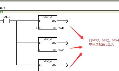 2、然后我们向VW0,VW2,VW4中传送数值1,2,3。