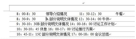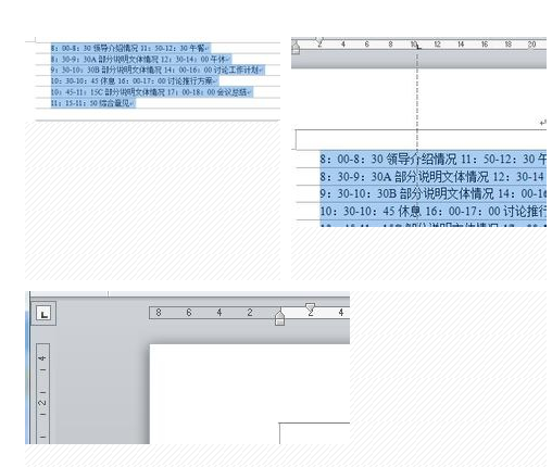 在上面标尺栏用鼠标拖动标尺,会自动生成制表符,松开标尺看该列对齐的效果。同样通过拖拽调节制表位,能迅速调整文字的对齐位置。