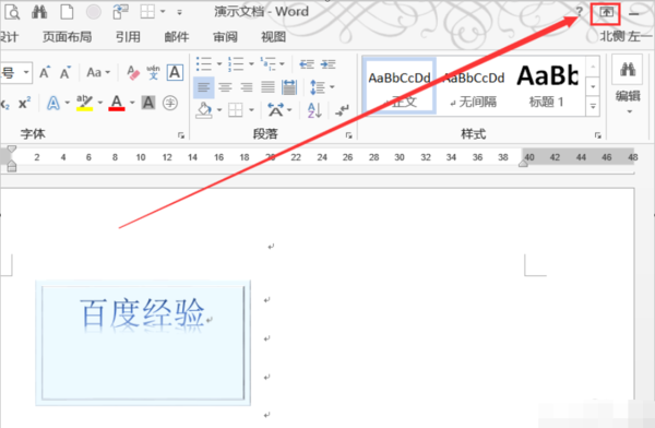1、找到Word主界面右上角如图位置按钮“功能区显示按钮”。