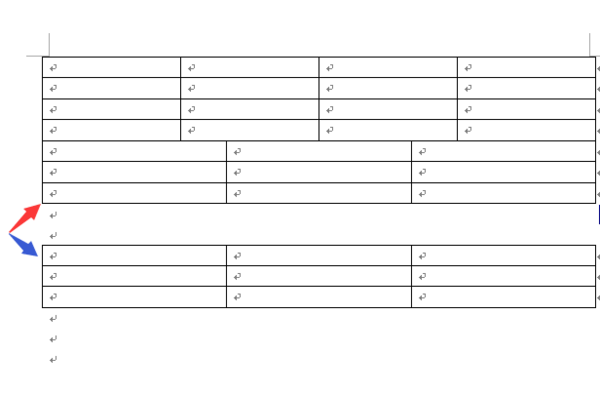 在Word中,对于一个独立的表格,当把鼠标移动到该表格左上角时,会出现一个双向十字箭头。利用这个特点,你可以先把鼠标放到这个表格的左上角,当出现双向十字箭头的时候,点击鼠标左键,即可将这个表格全部选中。通过观察选中的部分,你就可以分辨出这究竟是两个表格还是一个完整的表格了。