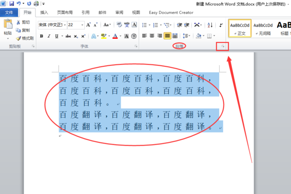 1、打开需要操作的WORD文档,选中需设置的段落文本,点击开始工具栏段落一项右下角的展开按钮。