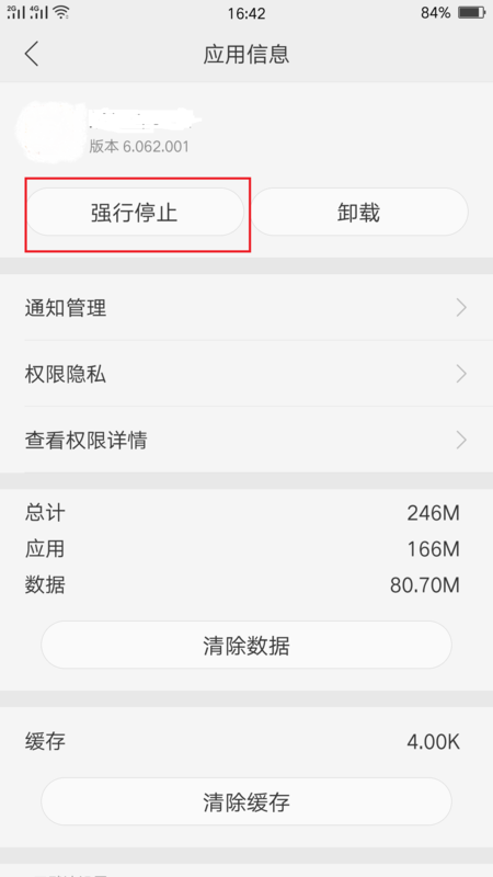 四、进入以后找到“强制停止”,点击即可彻底关闭该软件。