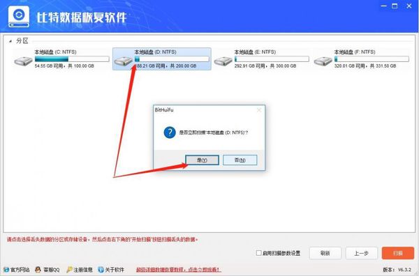 2.在点击后跳转的磁盘选择界面,双击选择视频保存的磁盘,在弹出的磁盘确认选择框中,点击“是”确定选择