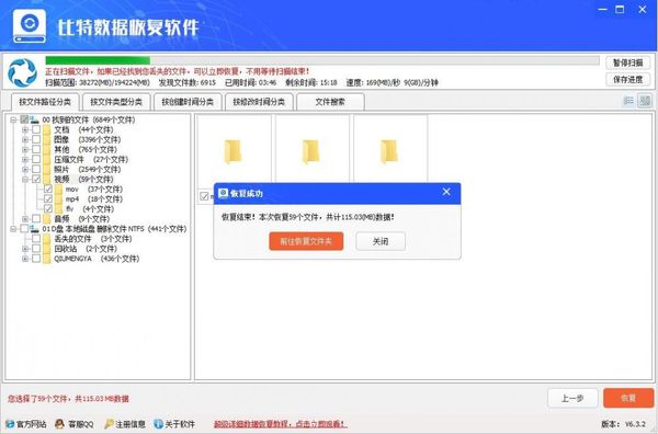 5.耐心等待文件恢复完成,然后在设置保存路径下查看恢复后的文件
