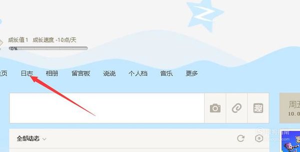 进入我们的QQ空间后,然后点击日志。