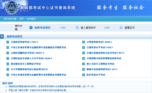 到教育部考试中心证书官网进行查询。官网地址:http://chaxun.neea.edu.cn/examcenter/main.jsp。