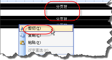 2.分别将插入点定位到分页符前面,按“Delete”键删除分页符。如下图: