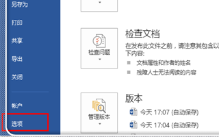 2、进入文件栏目之后,点击最下方的“选项”按钮,进入选项设置中。