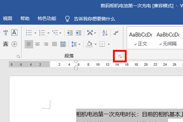 (2)在段落菜单里面,点击右下角的小图标,如下图红框所示;
