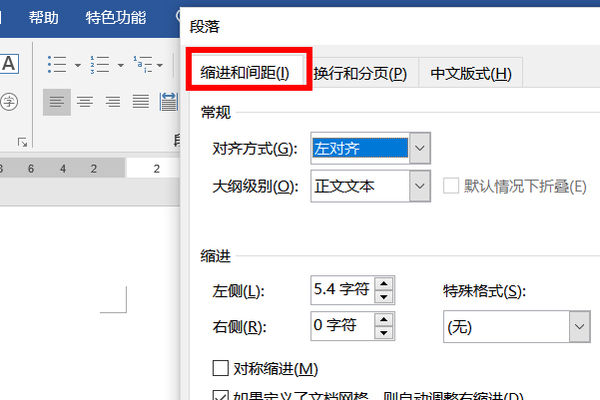 (3)进入“缩进和间距”设置界面,如下图红框所示;