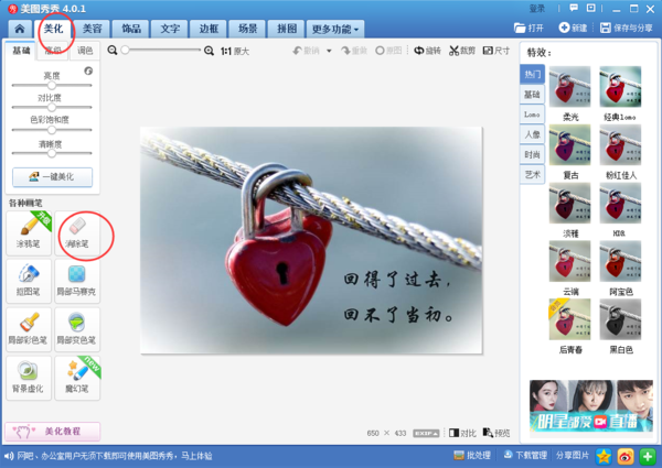 2、接着在“美化”分类中找到“消除笔”对文字进行消除;