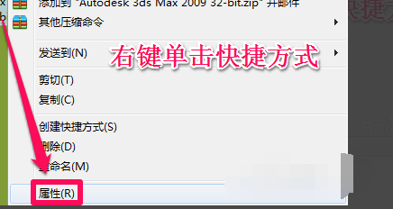 1.在桌面程序的快捷方式上右键单击,然后选择属性。