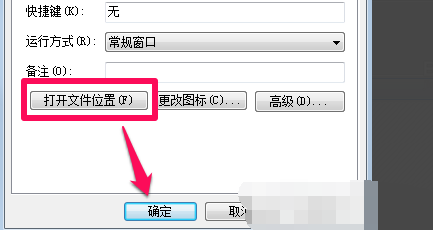 3.在属性的快捷方式中点击打开文件夹位置然后确定。