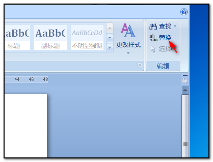 第1步,打开含有大量冗余段落标记的Word2010文档,在“开始”功能区的“编辑”分组中单击“替换”按钮。
