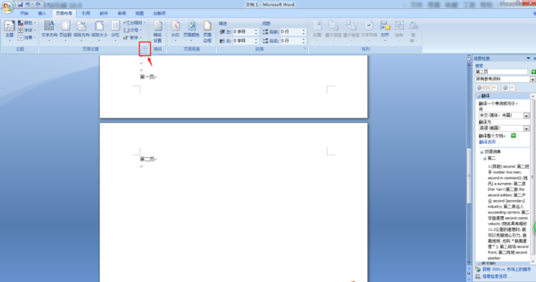 5.然后再点布局按钮,这个时候就不要去点纸张方向那个按钮了,而是旁边的一个指向右下角的按钮。如下面图中所示。