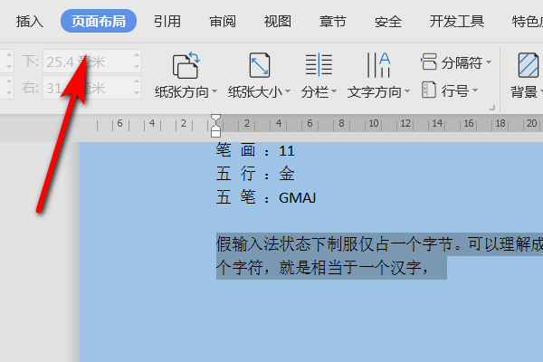 2、打开了这一份文档之后,选中需要设置的文字,点击页面布局。