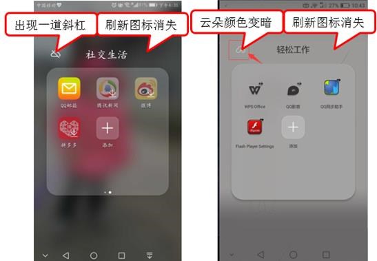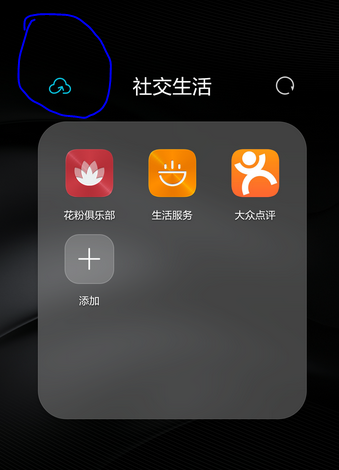 2.我猜你可能说的是云文件夹里推送的应用,华为默认桌面上提供的“社交生活”、“休闲娱乐”和“轻松工作”这三个是云文件夹,云文件夹点开后,可以看到左上角云朵的图标(如下图)云文件夹不仅具备了系统文件夹的属性,还能向我们推荐云端精品应用,如果想关闭它的应用推荐功能的话,点击一下文件夹左上角的云朵图标就可以了。
