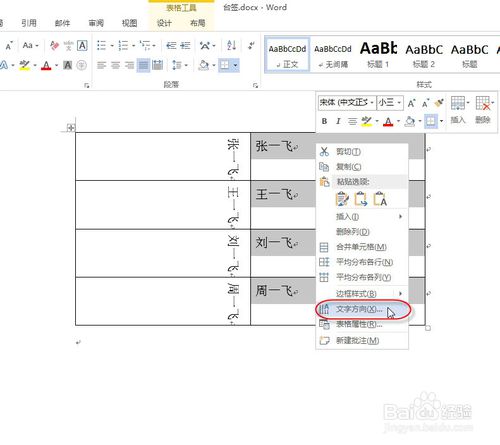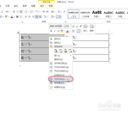 同样的方法:选中第二列,鼠标右键,在弹出的快捷菜单中选择“文字方向”命令