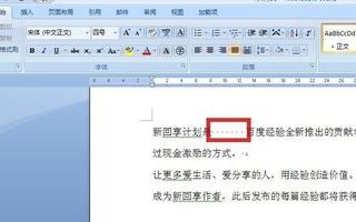 3、发现之前输入的空格变成了一连串小点点,可以看到刚刚点击的地方,颜色变深了,空格变成小点点的原因就是,你打开了显示编辑标记的按钮,打开这个可以更直观的显示,这串文字中加入了多少空格。