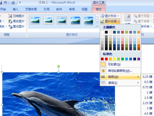 5、点击菜单栏格式中的“图片边框”选项,如下图所示,接着选好边框尺寸。