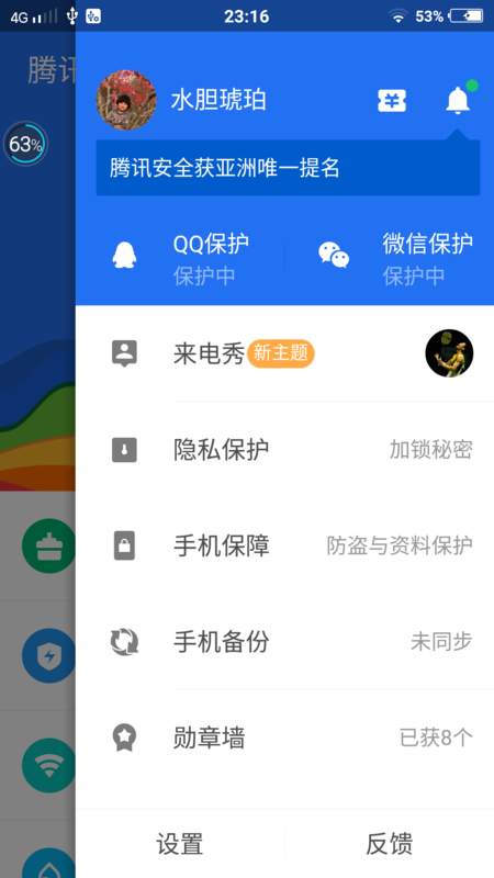 这个是需要在手机上打开腾讯手机管家,在右上角的个人中心打开、