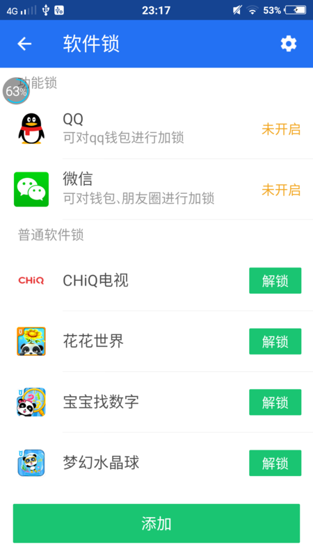 在普通软件锁页面这里点击【添加】按钮。