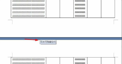 2、第一种方法是将word中页与页之间的间距缩小,这样word中表格跨页断开就不那么明显了。用鼠标移动到两个页面之间的间距的地方,双击隐藏空白即可。