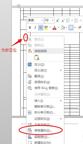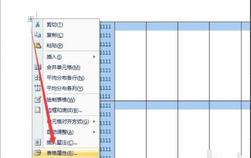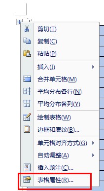 1)鼠标点击表格任意位置,将光标定位到表格中,然后单击鼠标右键,在弹出的右键菜单中选择“表格属性”。