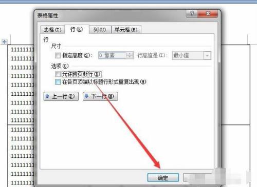 5、最后将允许跨页断行的勾选取消,然后确定保存就可以了。