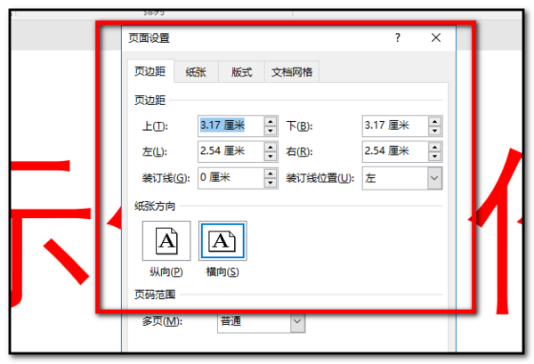 2、在页面设置对话框里,把页边距的上下左右的参数设置成合适的宽度。