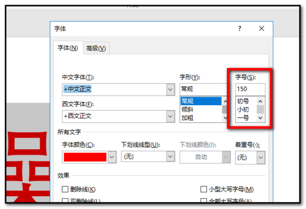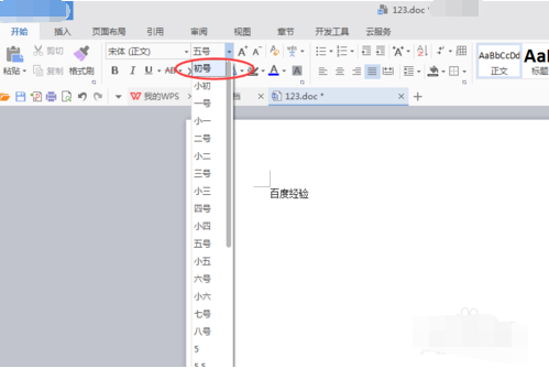 1、然后选择字号,拉到最顶,最大的显示是初号,如下图